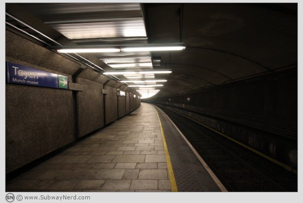 Fakta: T-banestasjonen er en av to stasjoner som har tre spor (to sideplattformer og ett sidepor)