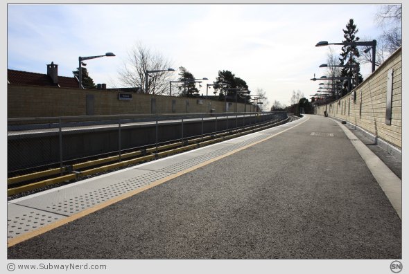 T-banestasjonen er den eneste på linjestrekningen med sitt utseende utformet i tre.
