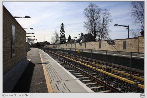 T-banestasjonen er den eneste på linjestrekningen med sitt utseende utformet i tre.