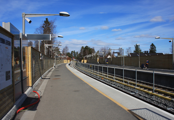 At man ikke fant plass til to er litt rart. Men flere av Linje 4 sine stasjoner har denne malen. Fortsatt er det ingen tvil om at utseendet her virker midlertidig. Selvom det ikke lenger èr slik.
