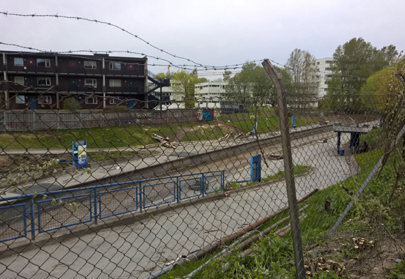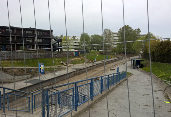 Sviller, skinner, trær og gjerder mellom skinnegang er bortevekk.
