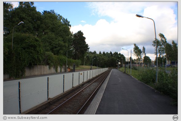 T-banestasjonen er den eneste på linjestrekningen som ligger midt i et borettslag.