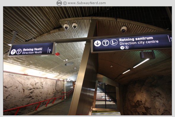 Romsås T-banestasjon er en stasjon på Linje 5. Den er bygget rett inn i fjellet og er kjent for sin byggekunst og kunstneriske utsmykninger. Over stasjonsområdet så ligger drabantbyen Romsås og Romsås Senter. Denne bildeserien er i vidvinkel.