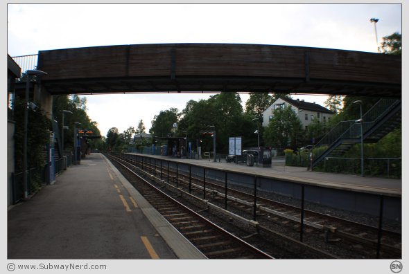 T-banestasjonens plattformer ligger i hvert sitt boligstrøk. Dette er unikt i T-banens system.