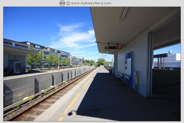 på hver sin kant. Området rundt stasjonen har et klassisk drabantby preg over seg.