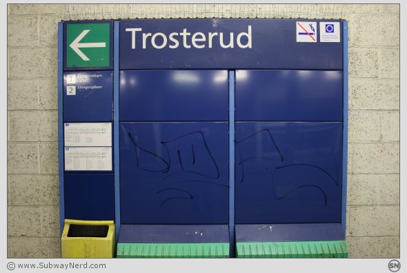 Trosterud T-banestasjon er den andre stasjonen på linjene 1 og 2 østover som går i tunnel. Den er bygget inn under en drabantby i tunnelmunning. Etter samme mønster som Stovner. Over stasjonen finnes det et mindre nærsenter.