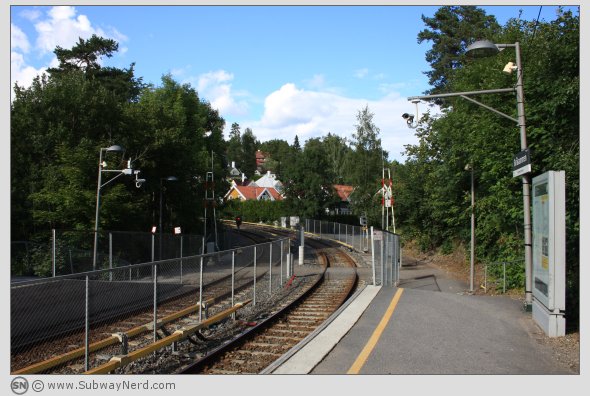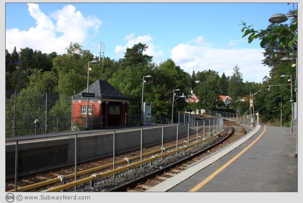 T-banestasjonen er èn av ni på Holmenkollbanen som ikke har trafikkert planovergang.