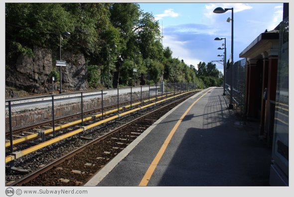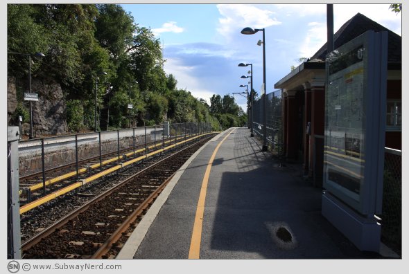 T-banestasjonen er èn av ni på Holmenkollbanen som ikke har trafikkert planovergang.