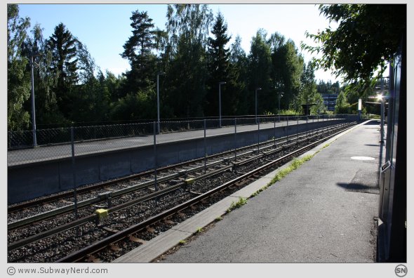 T-banestasjonen er den eneste på Linje 5 som ikke har metrostandard.