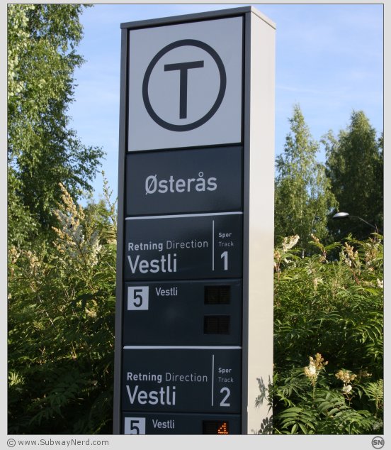 Østerås T-banestasjon er endestasjonen på Linje 5 i vestgående retning. Stasjonen ligger idyllisk til og har Østerås Skole og Østerås Kjøpesenter som nære naboer. Den er en av to stasjoner på linjestrekningen i Bærum Kommune.