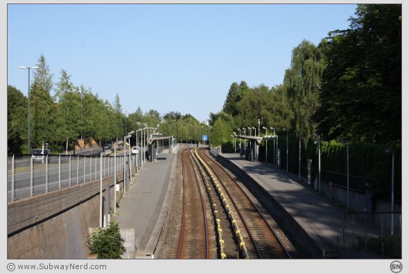 T-banestasjonen er en av to før Linje 2 og 5 deler seg inn i Kolsåsbanen og Røabanen.